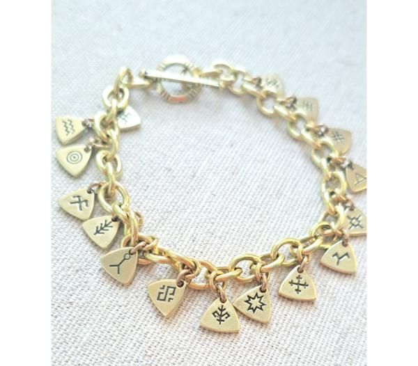 Bronzas rokassprādze ar dažādām baltu zīmēm, garums 18 cm ((ja vajadzīgs cits garums, rakstiet uz amulets@amulets.lv).